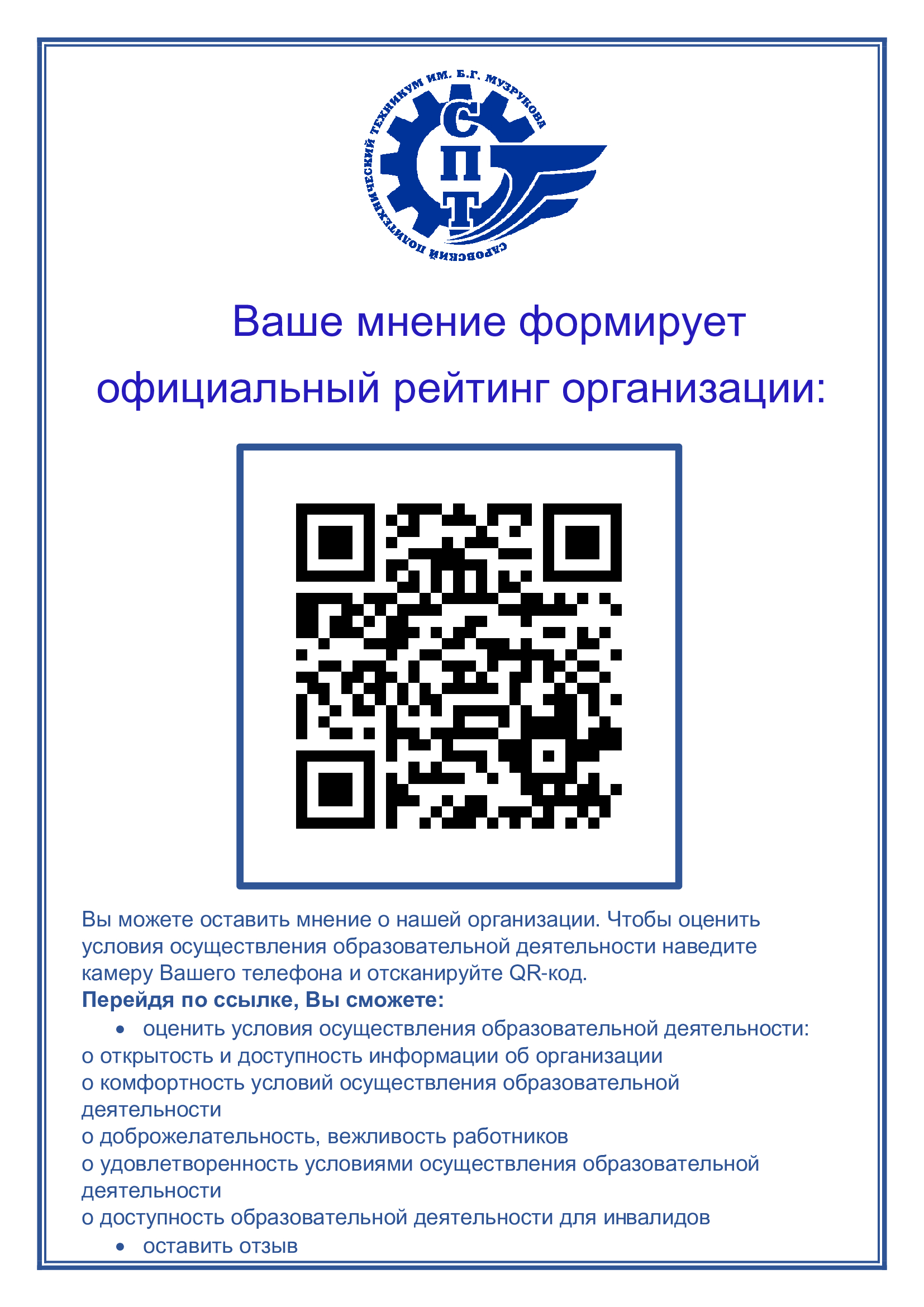 QR-код дает возможность открыть страницу организации на сайте bus.gov.ru либо в мобильном приложения «Наше мнение» (на выбор пользователя) и получить